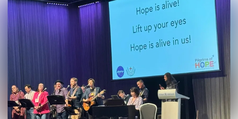 The ballroom at the CBD’s Hilton Hotel was packed for the opening of the National Liturgy and Music Conference with its theme of “Pilgrims of Hope, transformed through sacrament and song”.