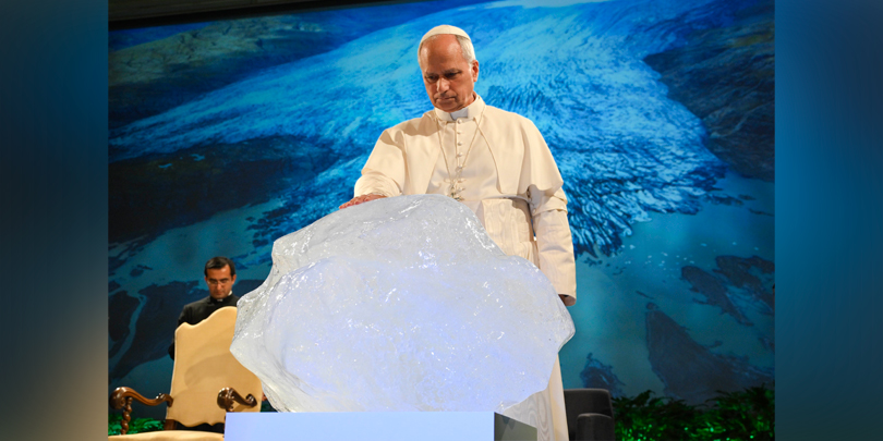 Seated behind a slowly melting chunk of ice from a glacier in Greenland, the Pope said, “God will ask us if we have cultivated and cared for the world that he created, for the benefit of all and for future generations, and if we have taken care of our brothers and sisters.”
