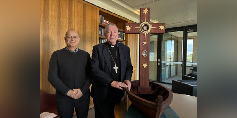 “The cross represents the journey of migrants, and the boat represents the Church as a pilgrimage toward a safe harbour,” said Fr Khalid Marogi, National Director of the Australian Catholic Migrant and Refugee Office.
