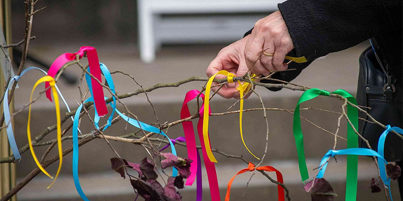 After the liturgy’s concluding prayer, participants were invited to tie a ribbon on tree branches “as a visible act of both repentance and solidarity”.