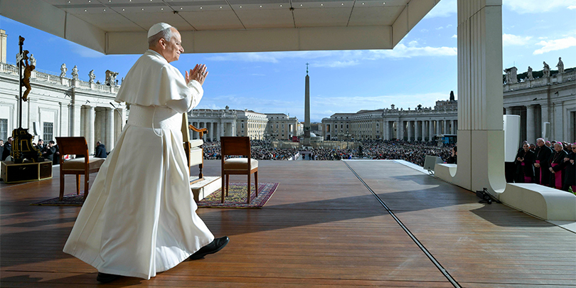 Pope Leo XIV arrives for his weekly general audience in St Peter’s Square at the Vatican yesterday (CNS/Vatican Media)