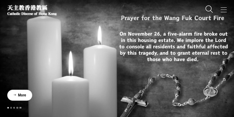 Hong Kong Diocese changed its website to black and white and offered a prayer for the victims of last week’s apartment complex blaze (Hong Kong Diocese)