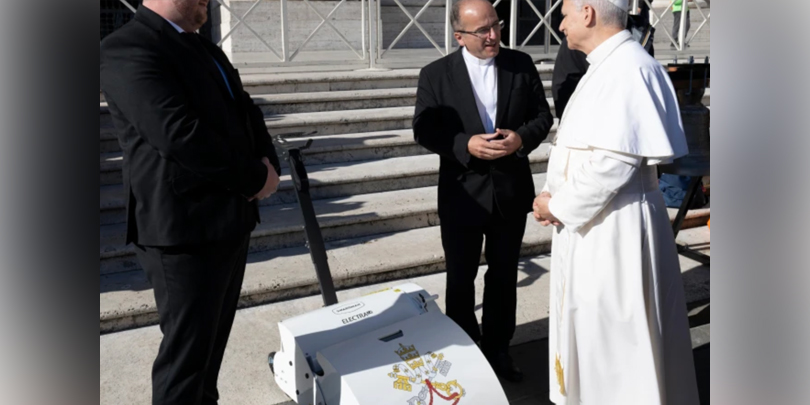 The Vatican’s gardeners have a new tool for maintaining the papal grounds: a custom-designed electric lawn mower bearing the Holy See’s coat of arms. Source: CNA.