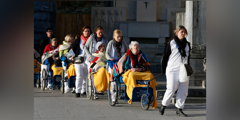 Caregivers and disabled at the Shrine of Our Lady of Lourdes in southwestern France (CNS/Paul Haring)