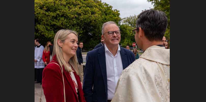 Anthony Albanese attended Mass at St Christopher’s Cathedral in Canberra on Sunday morning alongside his wife, Jodie Haydon.