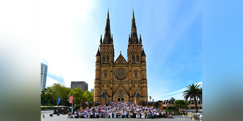 Catechumens entering the Church in 2026 outside St Mary’s Cathedral, Sydney (The Catholic Weekly/Giovanni Portelli)