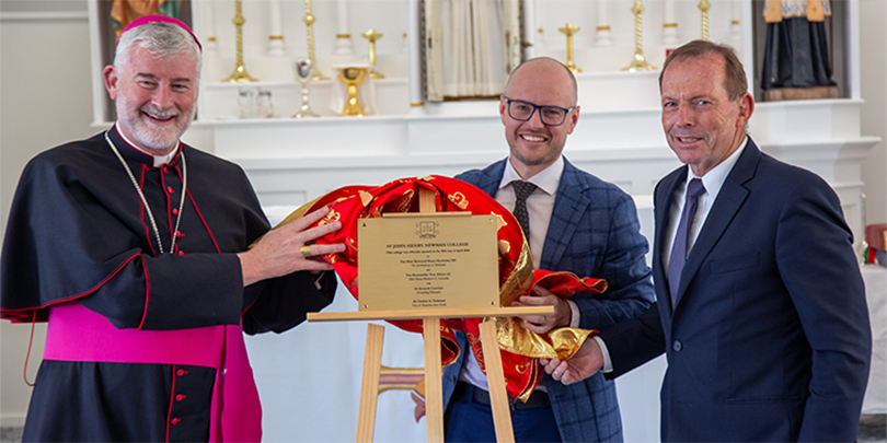 Former prime minister Tony Abbott spoke after the Mass and described the college’s opening as a “new beginning” dedicated to the best of human thought.