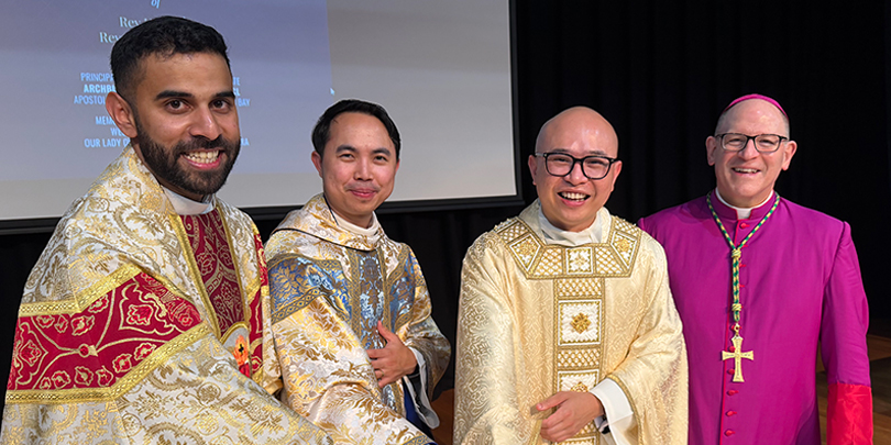 For the second time in five years, Archbishop Anthony Randazzo has ordained three priests at the same time for the Broken Bay Diocese, with Frs Shayne D’Cunha, Tân Nguyen and Huy Tran committing themselves to a life of service to the People of God. Source: Broken Bay News.