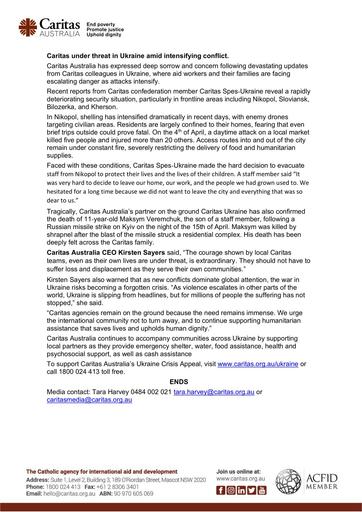 pdf 260423 – Caritas Australia – Caritas under threat in Ukraine amid intensifying conflict