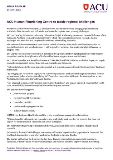 pdf 260424 – ACU – ACU Human Flourishing Centre to tackle regional challenges