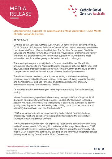 7. 260423 – CSSA – Catholic Social Services Australia Urges Respect for Participants’ Dignity at the heart of NDIS Reforms