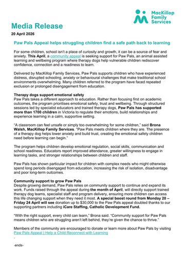 260421 – MacKillop Family Services – Paw Pals Appeal helps struggling children find a safe path back to learning.pdf