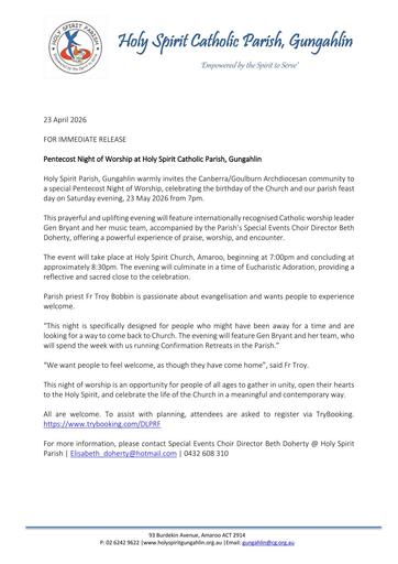 pdf 260423 – Gungahlin Parish – Pentecost Night of Worship at Holy Spirit Catholic Parish, Gungahlin