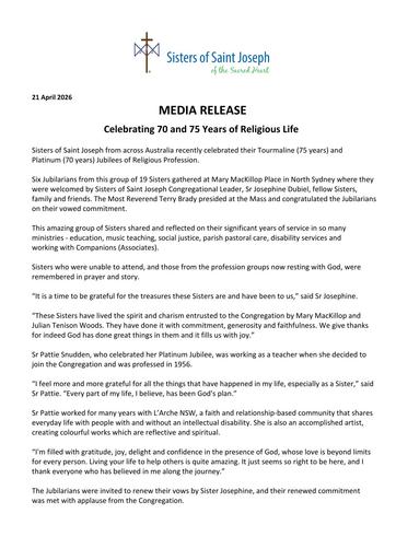 pdf 260421 – Sisters of Saint Joseph – Celebrating 70 and 75 Years of Religious Life