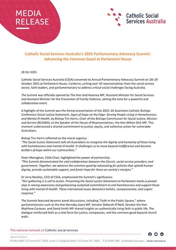 pdf 251029 – CSSA – Catholic Social Services Australia’s 2025 Parliamentary Advocacy Summit Advancing the Common Good at Parliament House