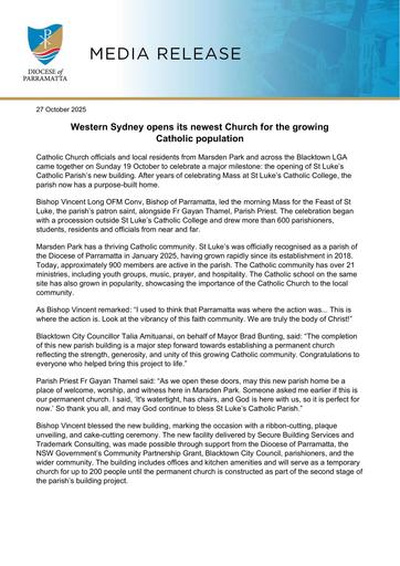 pdf 251027 – Parramatta Diocese – Western Sydney opens its newest Church for the growing Catholic population