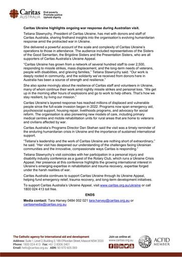 7. 251030 – Caritas Ukraine – Caritas Ukraine highlights ongoing war response during Australian visit