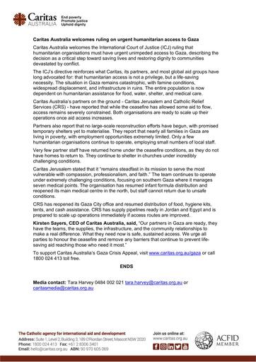7. 251023 – Caritas Australia – Caritas Australia welcomes ruling on urgent humanitarian access to Gaza