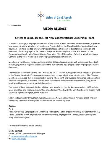 pdf 251027 – Sisters of Saint Joseph – Sisters of Saint Joseph Elect New Congregational Leadership Team